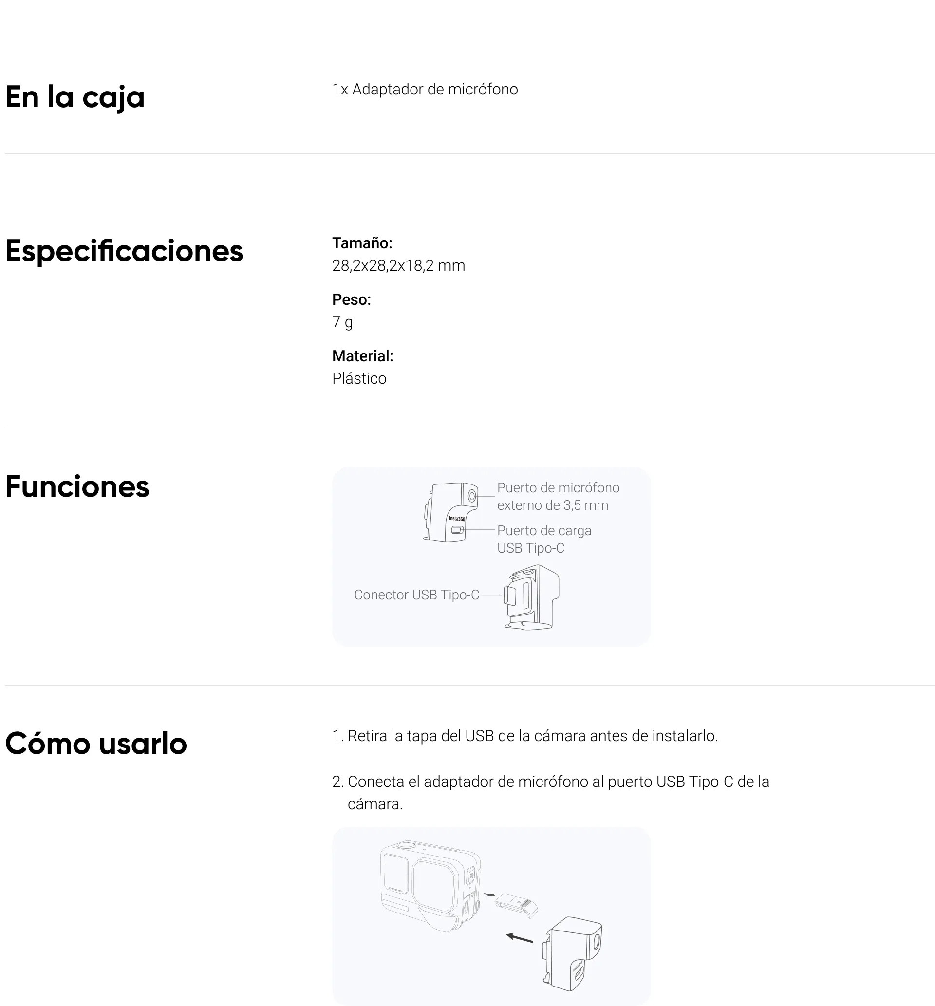 Puertos USB-C y audio de 3,5 mm para que puedas cargar tu cámara mientras está conectada al micrófono. Nota: No admite carga rápida PD.