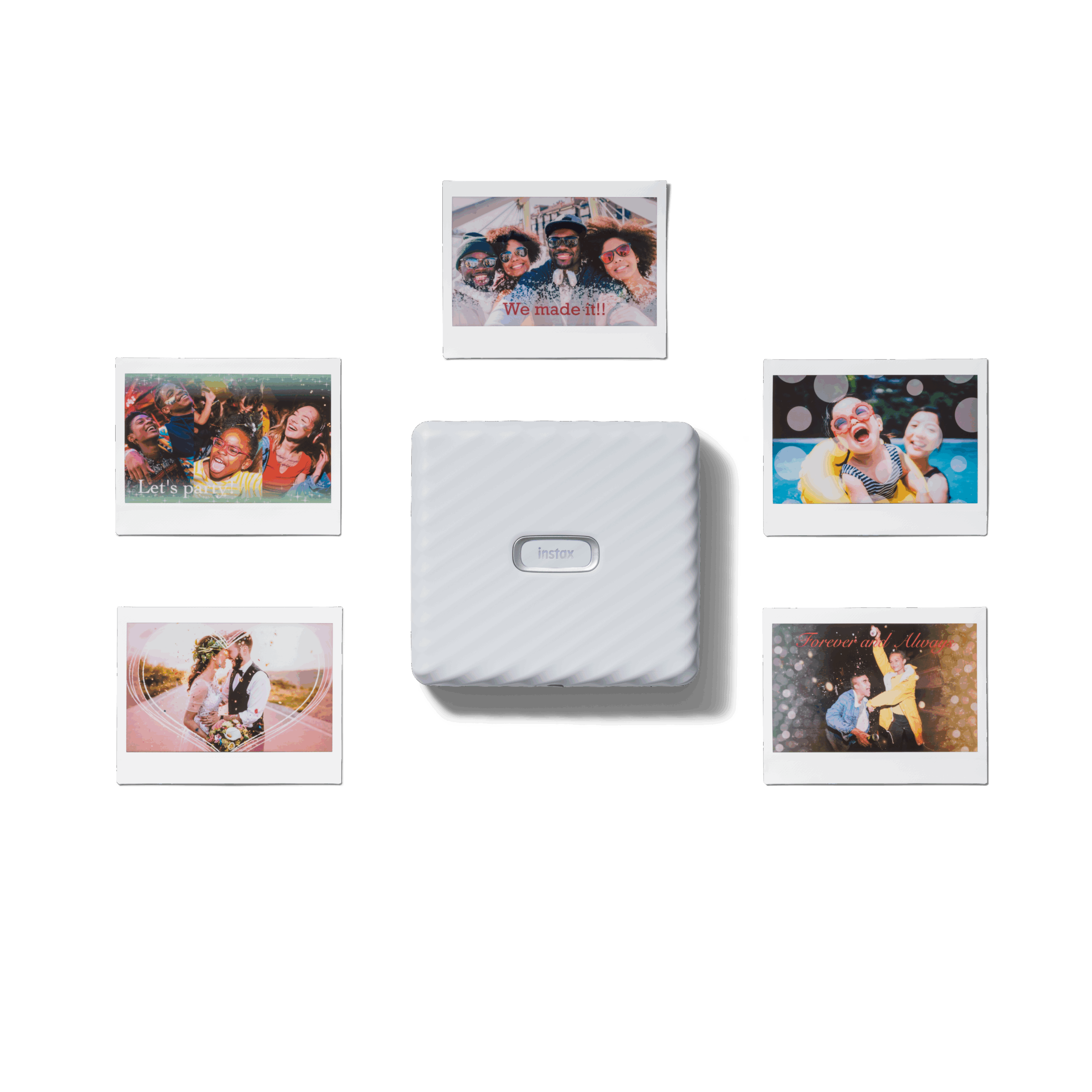 Impresión de video y pausa: imprime tus recuerdos con la aplicación gratuita INSTAX LINK Wide descargable. Desplázate a través de tus vídeos favoritos en el rollo de tu cámara, selecciona el marco perfecto y luego imprime amplio. Mientras estás en ello, ¿qué tal añadir un mensaje oculto o un enlace al video a través de un código QR?