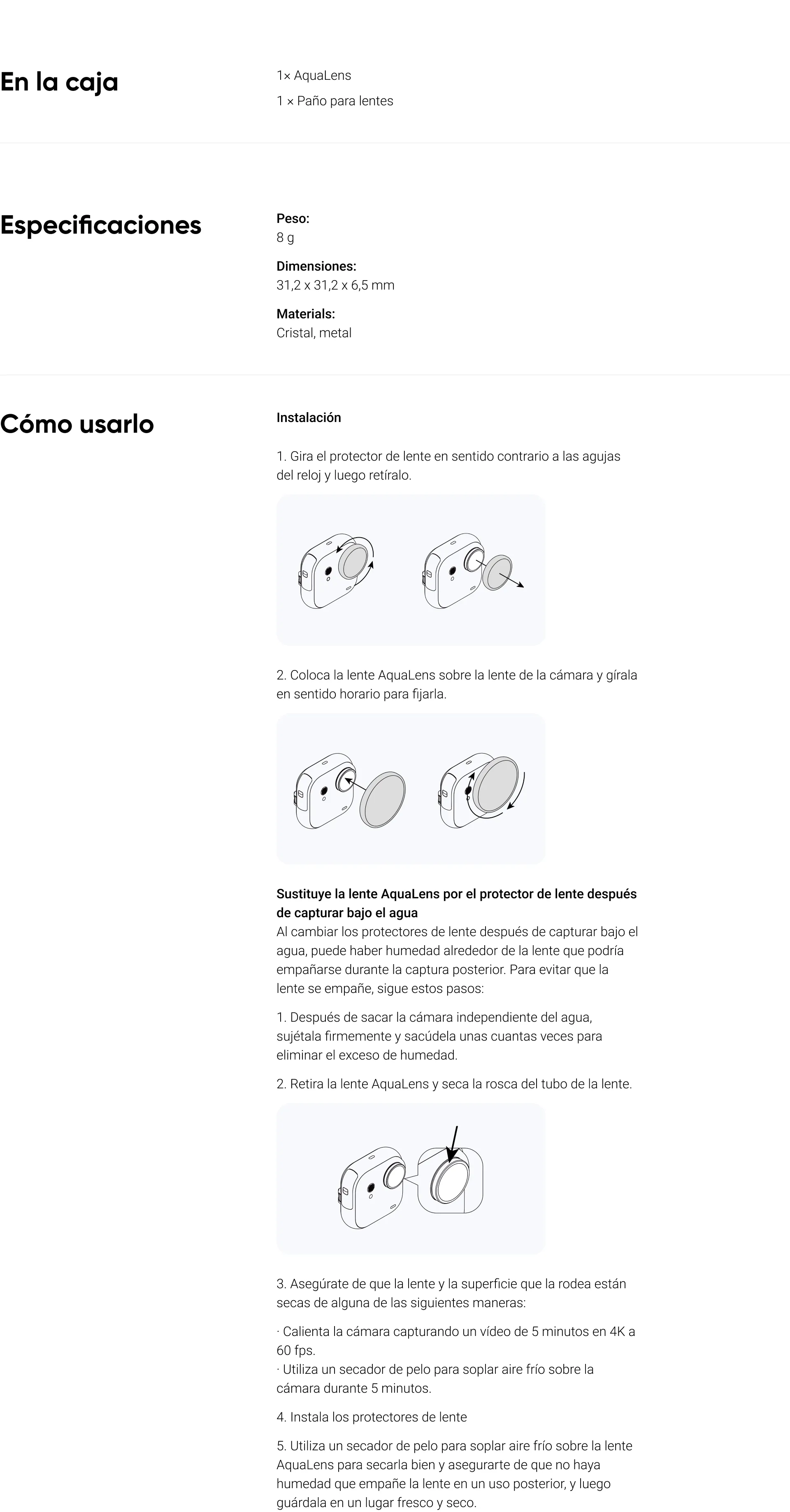 Nota: Este accesorio no es necesario cuando se utiliza la funda de buceo.