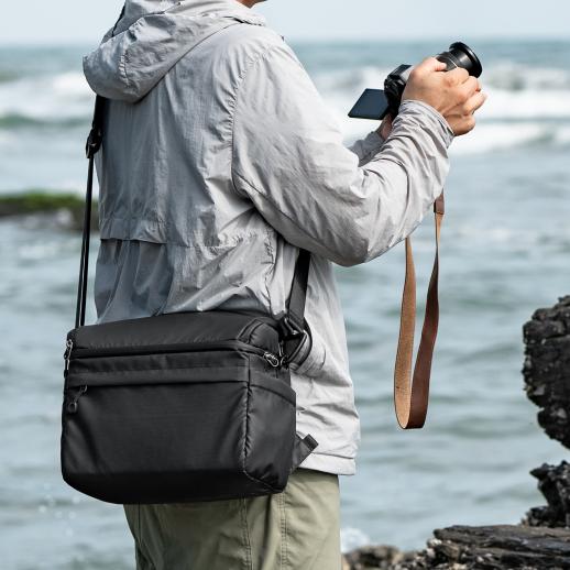 - Diferentes estilos de viaje – Cuando use la bolsa como bandolera, puede sacar su equipo de cámara rápidamente para captar el maravilloso momento. Cuando use la bolsa como mochila, puede colocar su ropa en el compartimento superior y el equipo de la cámara en el compartimento inferior.