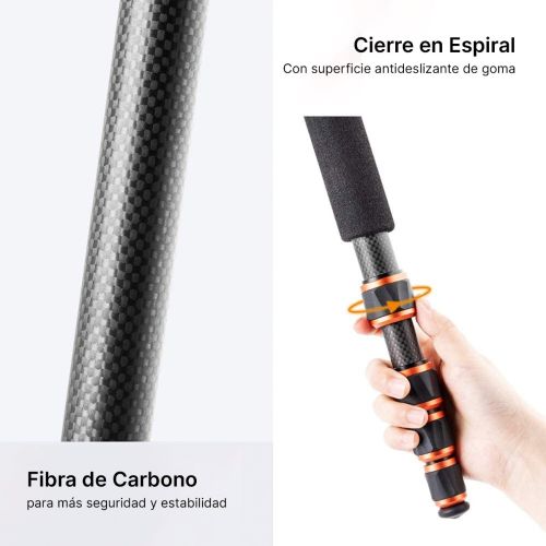 Trípode Fibra de Carbono: Este Trípode de Viaje está fabricado en fibra de carbono, que es resistente al calor,a la corrosión, un 30% ligero que lo de alumino. Gracias al material carbono, este trípode ligero es más fuerte, estable y compacto. Es el mejor opción para fotografía al aire libre.