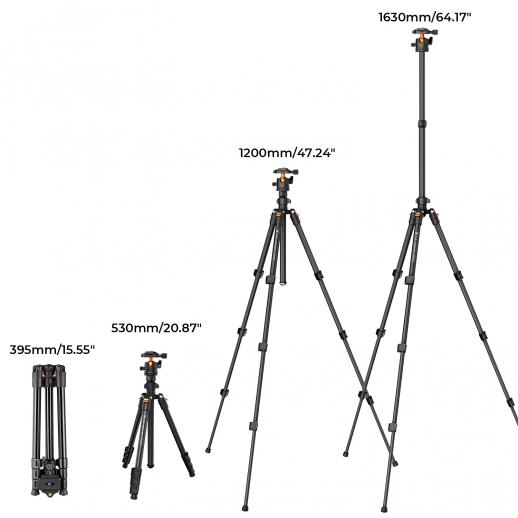 Características: Lightweight and Portable: 4 section leg can adjust tripod height from 20.4”/52cm to 64.1”/163cm; it can be folded to 15.3”/39cm to make it easy to put it in the carrying bag; the net weight with the ball head included is only 2.53lbs/1.15 KG. 360 Grados Metal Ball Head: 28mm cabeza de bola de metal se puede girar a cualquier ángulo que desee, ayudando a mejorar el rango de actividad de la cámara durante panning.The 360 grados de giro le permite configurar tomas de precisión para capturar la belleza de los paisajes. Eficiente y Flexible: Con potente y rápido bloqueo de pata de cabra, sólo tiene que utilizar una mano puede abrir y cerrar todos los botones en pocos segundos. Es muy fácil de usar, que le ahorra más tiempo y puede más centrado en disfrutar del rodaje. Versatile Ability: La columna central invertida instalación (también con una columna central corta) para lograr el tiro con caña más bajo, tiro con arco y fotografía especial. More Compatibilit Esty: e trípode de cámara con rosca estándar de 1/4 de pulgada, que se puede aplicar a la mayoría de las placas de liberación rápida Arca-Swiss; 1/4 “tornillo es adecuado para la mayoría de las cámaras, cámara DSLR, proyector y telescopio, etc.
