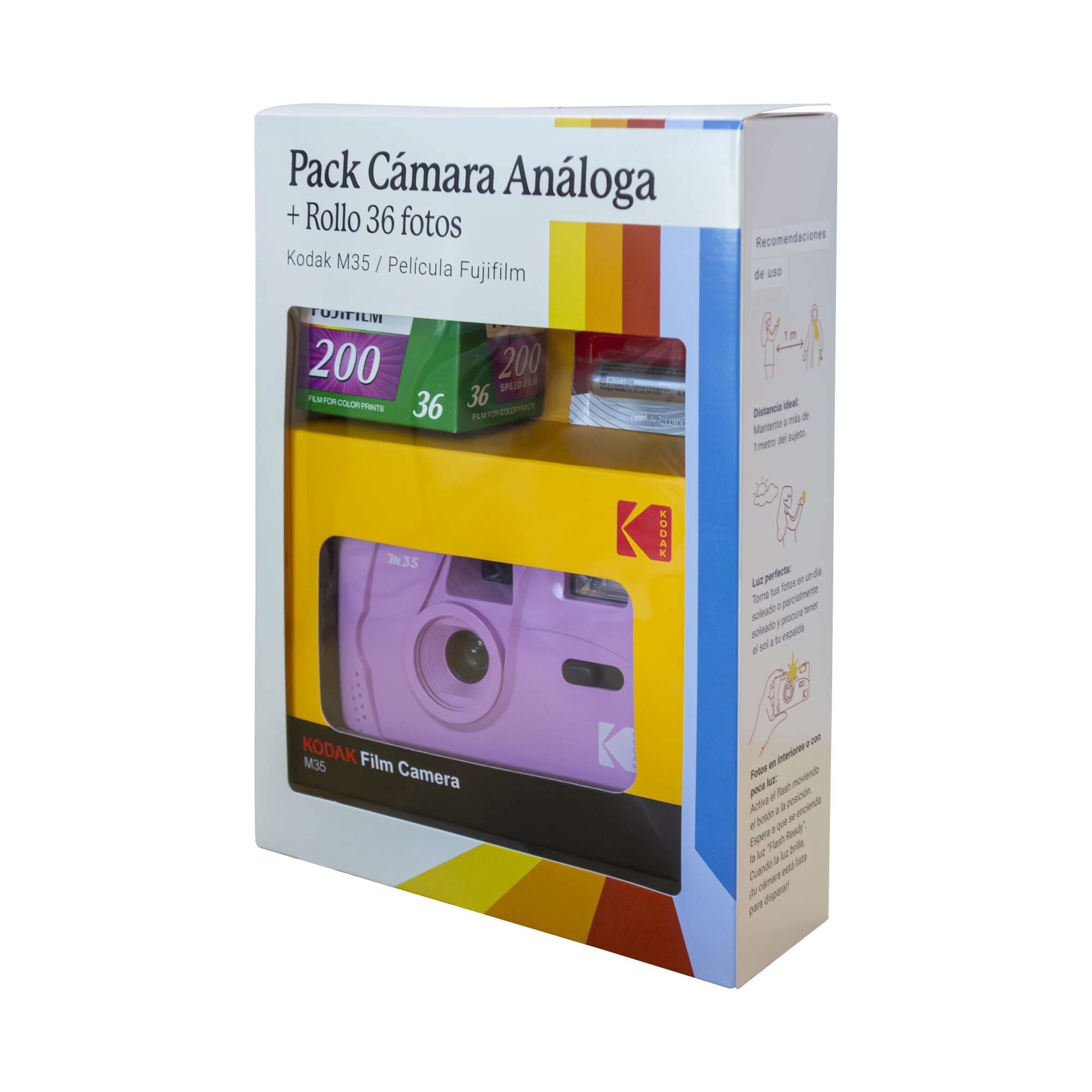 Este pack está pensado para ofrecer una experiencia completa, combinando facilidad de uso, portabilidad y el atractivo clásico de la fotografía en película.