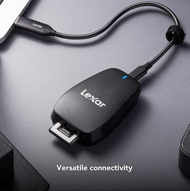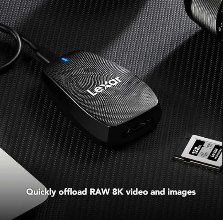 El lector funciona mediante sistema plug and play, por lo que no requiere instalación de software ni controladores adicionales. Está optimizado para transferir archivos pesados como secuencias fotográficas, video 4K y 8K RAW y contenido generado por cámaras mirrorless y DSLR de alto rendimiento.