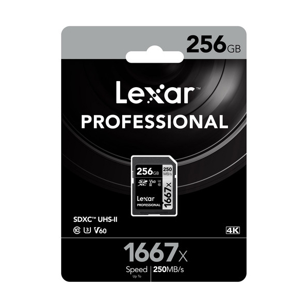 La tarjeta de memoria SDXC profesional 1667x UHS-II de 256 GB de Lexar presenta una capacidad de almacenamiento de 256 GB y aprovecha el bus UHS-II para admitir funciones DSLR avanzadas como ráfagas continuas de obturación y disparos rápidos, así como capturas en bruto y JPEG.