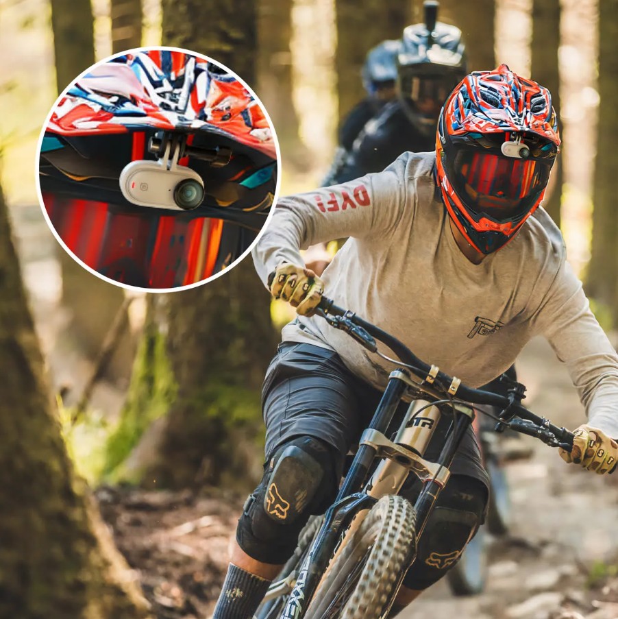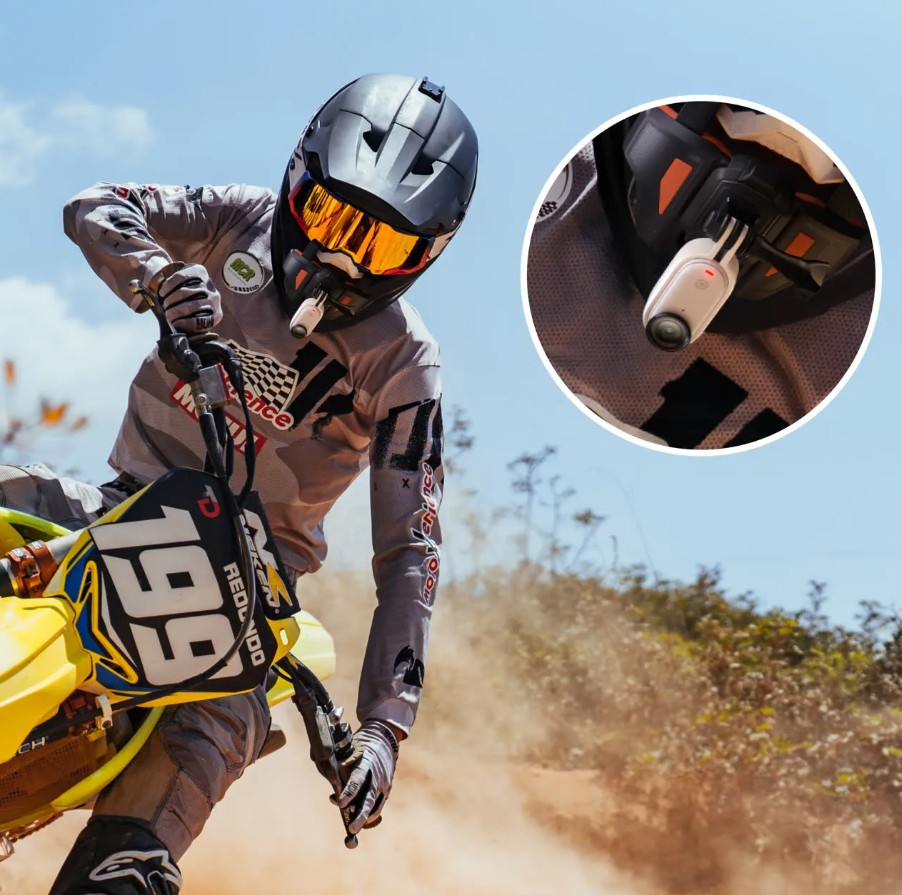 Su diseño compacto y liviano mantiene la portabilidad de la cámara, integrándose fácilmente en distintas configuraciones de montaje. Es compatible con soportes estándar tipo acción, lo que amplía sus posibilidades de uso en trípodes, cascos, bicicletas u otros accesorios.