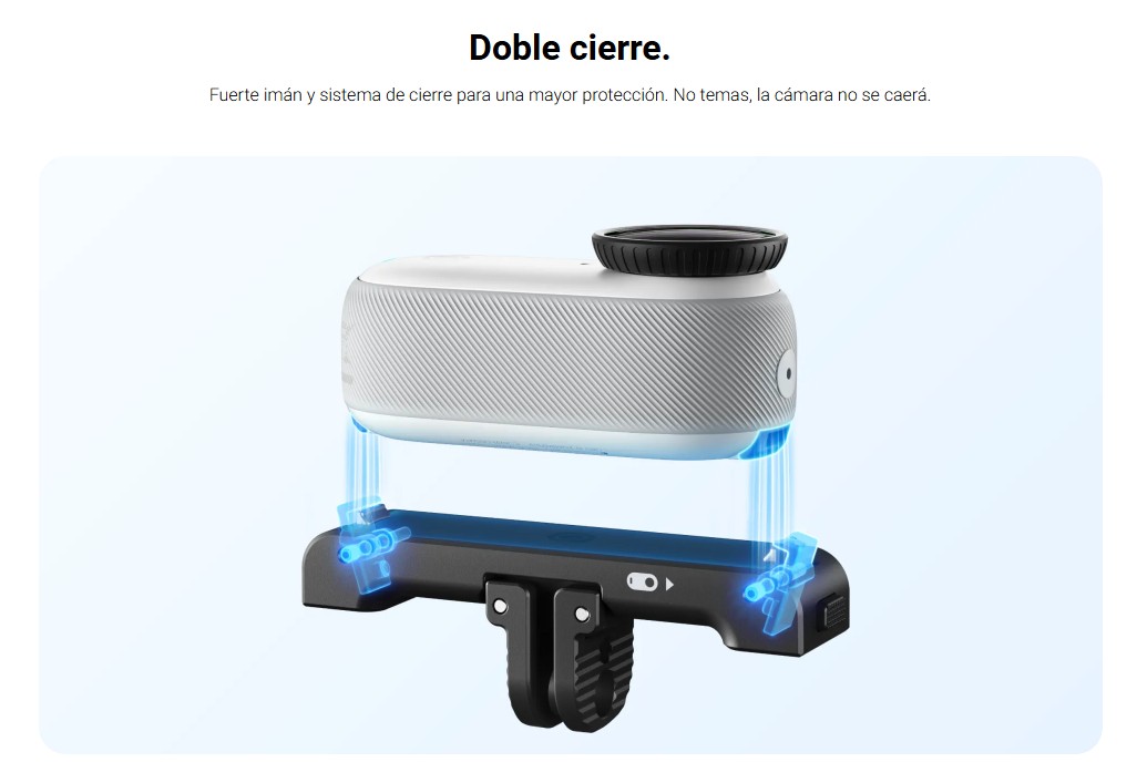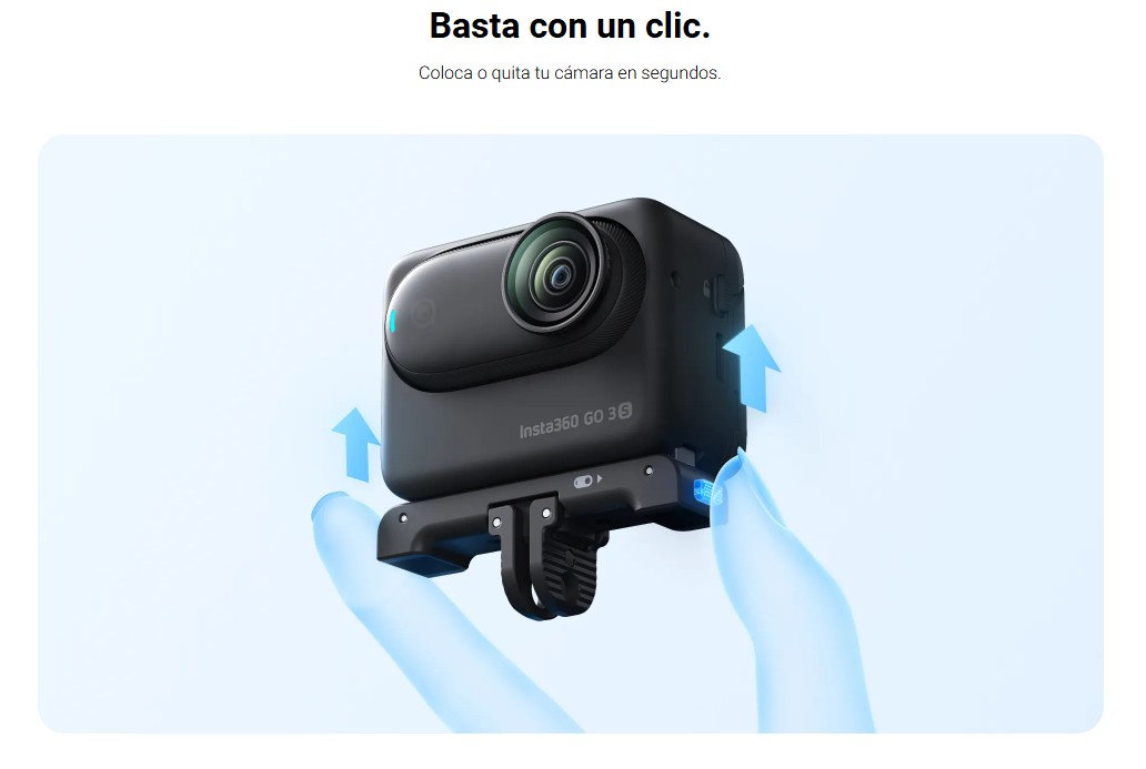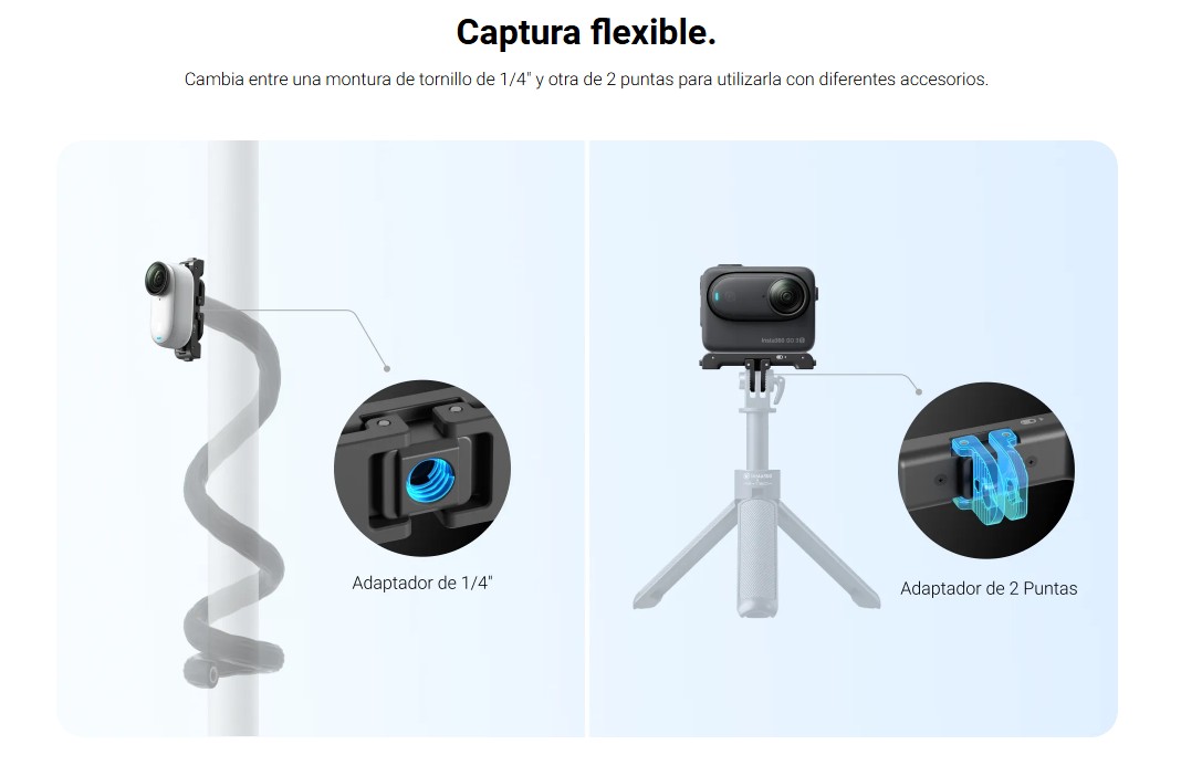 La montura de liberación rápida para Insta360 GO 3S permite montar y desmontar la cámara en segundos con un sistema seguro de doble bloqueo y fijación magnética. Compacta, ligera y compatible con trípodes, cascos y accesorios de 1/4″. Ideal para cambiar de toma de forma rápida y estable.