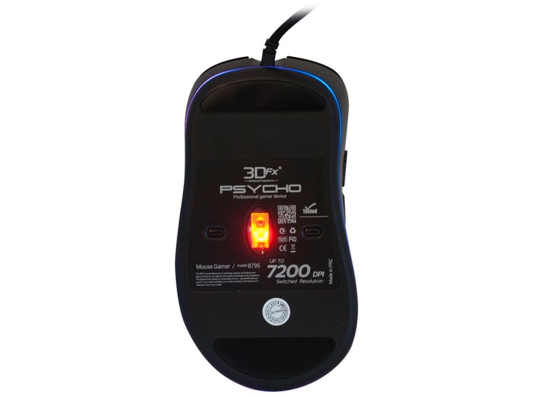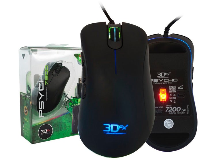 PSYCHO 7,200 DPI: Juega a ser el campeón, juega como los profesionales, combinando la tecnología más avanzada con una amplia gama de características personalizables. Sienta la comodidad de los teclados 3DFX los cuales proporcionan un mayor confort durante largas horas de juego. La ubicación estratégica de todos los botones proporciona un posicionamiento perfecto para los juegos, sin esfuerzo. El mouse 3DFX Acid Rain, permite intercambiar la precisión según el juego, de modo que puedas obtener una ventaja aún mayor en la competición. CARACTERÍSTICAS: Largo del cable: 1.5mt (aprox) – Mouse de 6 Botones. – Resolución intercambiable: 1200 / 2400 / 3600 / 4800 / dpi. – Tasa de sondeo-dinámico: hasta 1000 Hz. – Seguimiento de Velocidad: hasta 6m/sec. – Ajustes de sensibilidad mediante botón DPI. – Conector USB. – Peso: 140Grs (aprox) – Dimensiones: 20cm alto x 14,5cm ancho x 7cm profundidad. – Peso: 0.225grs