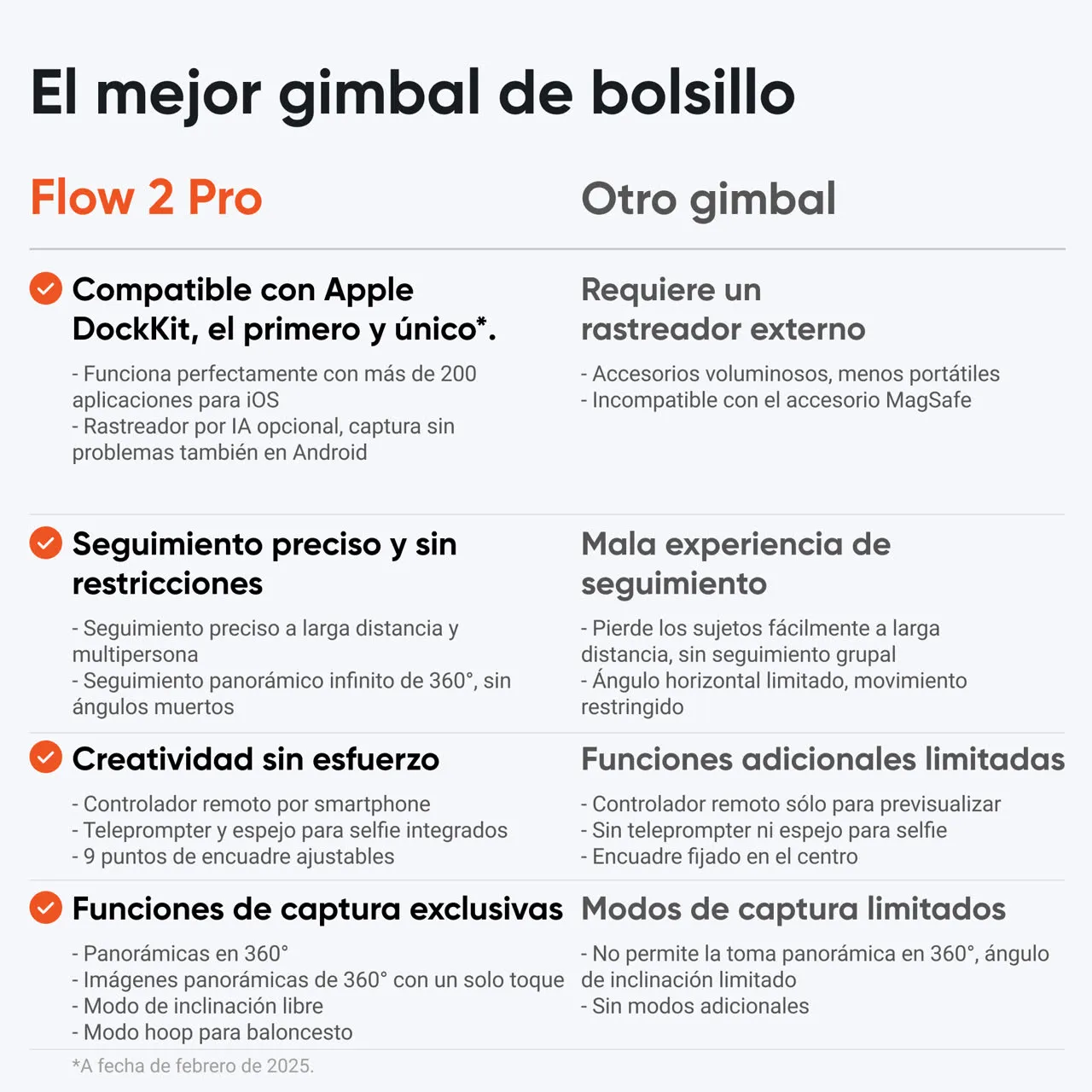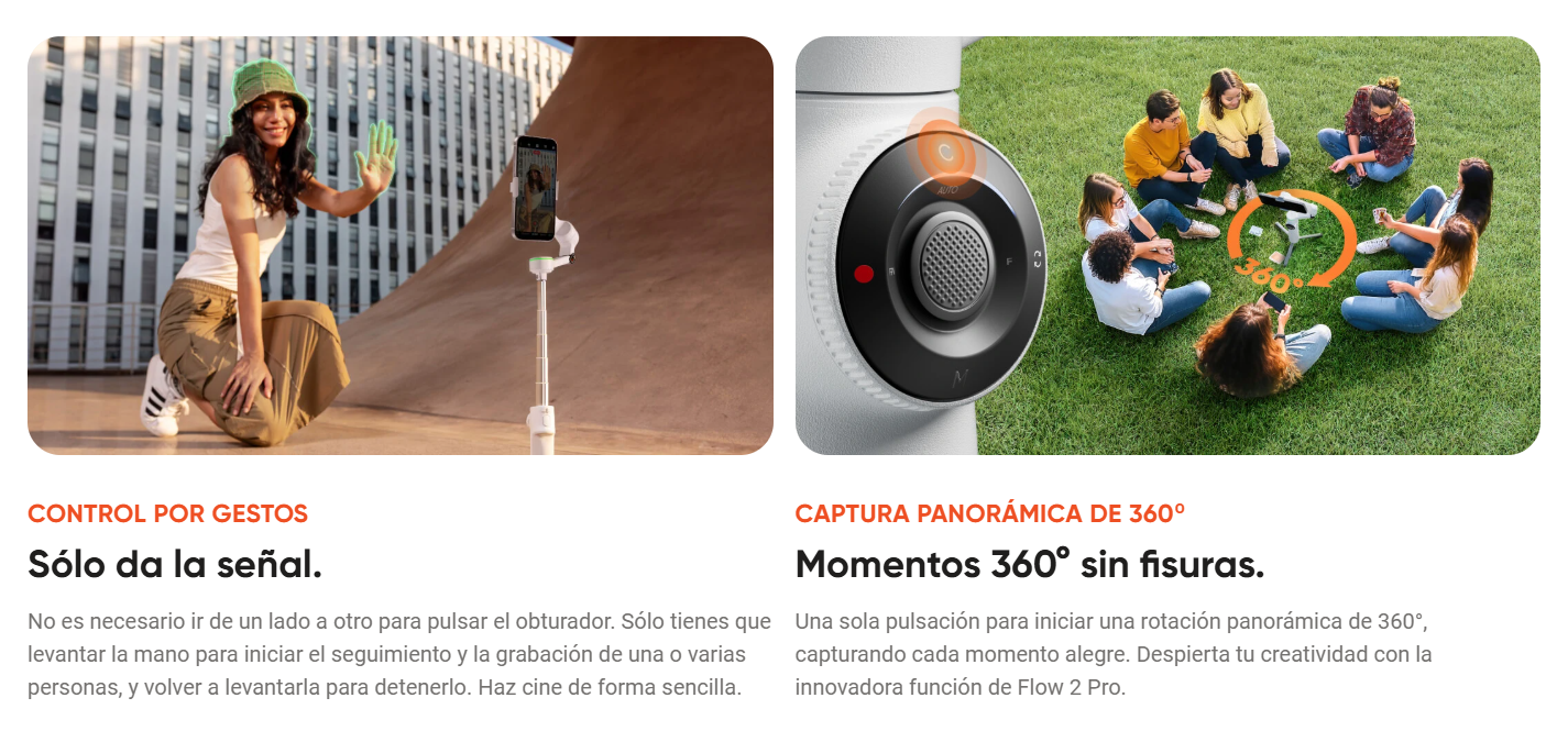 Una primicia en la industria1, ¡Flow 2 Pro sigue cada uno de tus pasos! Muévete a tu antojo, con el seguimiento panorámico de 360° sin límites: ¡sin topes ni fronteras!