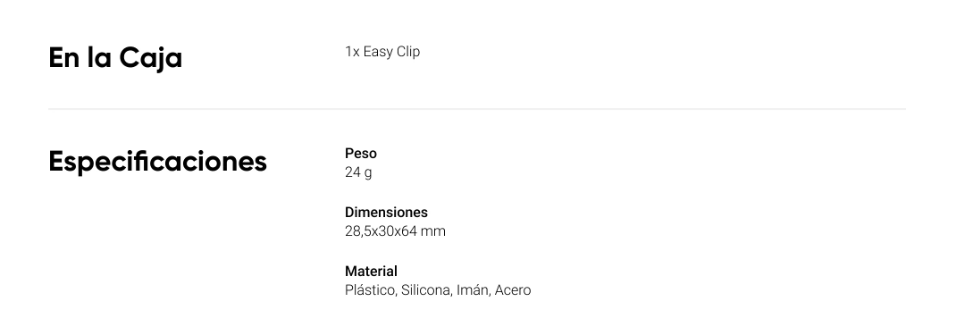 - El nuevo diseño permite utilizar Easy Clip con el Colgante Magnético.