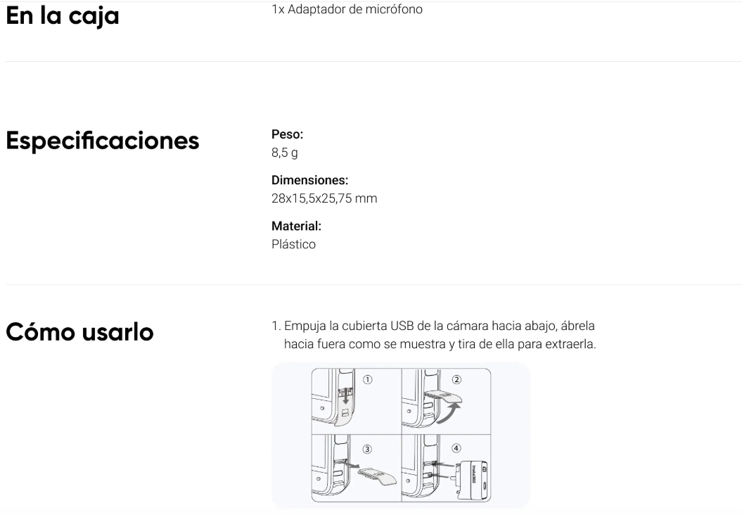 - Nota: Cuando este producto es usado con Ace Pro & Ace, los usuarios tienen que adquirir el Soporte de Liberación Rápido o el Adaptador de 3 clavijas a 1/4″, vendidos por separado.