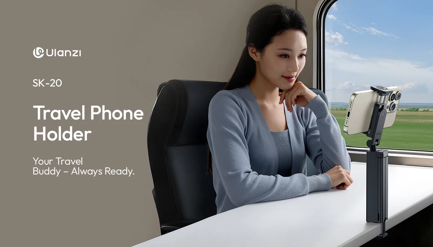 El Soporte de Teléfono Portátil Ulanzi SK-20 para Viajes es un soporte portátil y compacto para teléfonos móviles, ideal para viajes, vlogs, videollamadas y fotografía. Su diseño plegable y ligero permite un transporte fácil y un uso versátil en cualquier lugar.