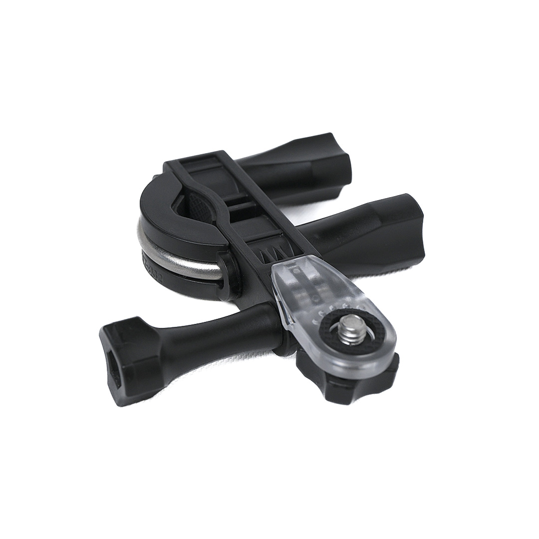 Lleva tu cámara de acción en cada aventura con este soporte universal para bicicleta. Diseñado para adaptarse a la mayoría de manubrios, su estructura resistente asegura una fijación firme y estable, incluso en terrenos irregulares.