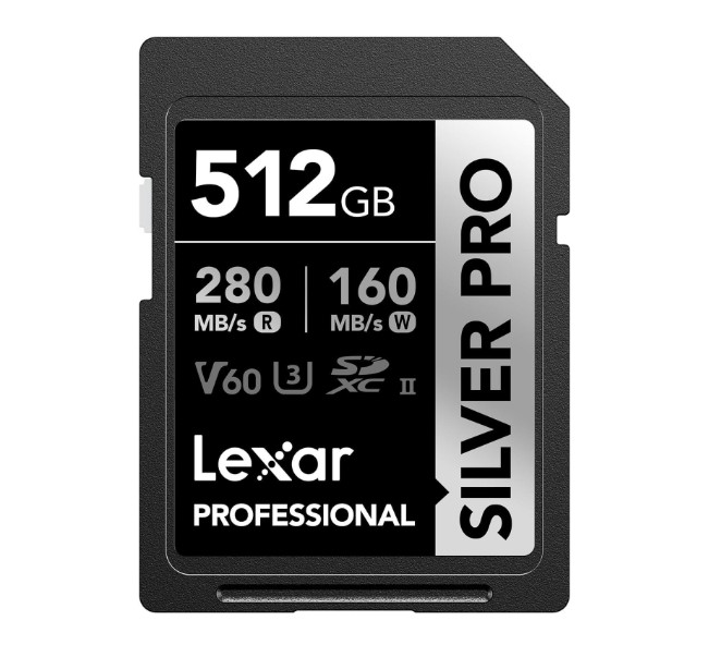 La tarjeta de memoria Lexar Professional SILVER PRO SDXC UHS-II de 512GB está diseñada para fotógrafos y videógrafos que necesitan máxima velocidad y confiabilidad. Gracias a su interfaz UHS-II y velocidades de hasta 280 MB/s de lectura y 160 MB/s de escritura, permite capturar ráfagas de fotografías en alta resolución y grabar video Full HD, 4K e incluso 4K/60p sin interrupciones.